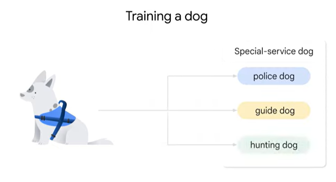 - 개를 생각해보자. 개에게 ‘앉아, 이리와, 엎드려, 기다려’ 등을 가르쳐 기본적인 기능(?)을 할 수 있도록 하는 훈련을 시킨다면, 이 훈련을 pre-training에 해당한다고 할 수 있다.